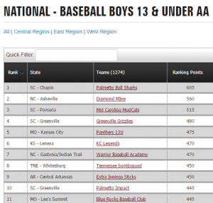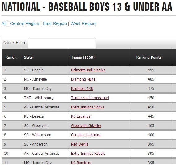 usssa-logoFor the 3rd consecutive month,  the 13U Palmetto Ball Sharks, have been awarded the #1 overall NATIONAL RANKING in the latest USSSA points standings.
